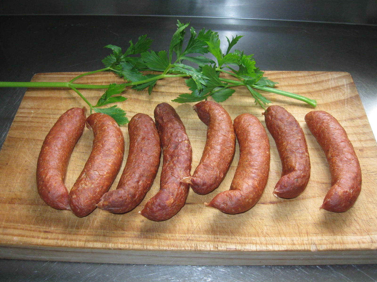 The kolbaz sausages are quite highly spiced although not as spiced as the sremska made by Park Rd. They make for very good eating. The sausage is ground to a medium consistency. The paprika and smoking comes through strongly. I assume that garlic, salt and pepper are part of the recipe too. This makes for a great tasting sausage. An excellent spicy sausage for everyday consumption and enough to keep you going on the wettest weekend tramp. What more can I say?
