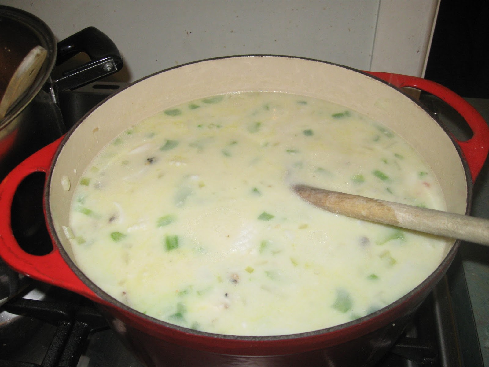 I would describe my nieces as conservative eaters. However, they choose the chicken and sausage soup, along with most of those present. The servings decreased in size as more people requested it, and I had the chowder. The chicken and sausage soup was well liked by all. Eaten with baguette, this is dunked in the soup to make the meal very enjoyable eating. A great success. A very pleasant winter evening.